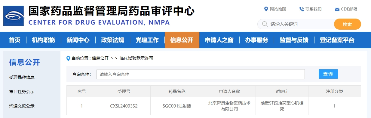 2024年08月05日,由熱景生物(SH.688068)孵化的創(chuàng)新藥公司北京舜景生物醫(yī)藥技術(shù)有限公司(以下簡(jiǎn)稱舜景醫(yī)藥)研制的全球首款創(chuàng)新藥SGC001注射液成功獲得國(guó)家藥品監(jiān)督管理局藥品審評(píng)中心臨床試驗(yàn)?zāi)驹S可。這是繼2024年05月22日該產(chǎn)品獲得美國(guó)FDA臨床試驗(yàn)(IND)許可之后又一里程碑事件。2025年3月,SGC001獲得美國(guó)FDA授予的快速通道認(rèn)證(Fast Track Designation)。2025年10月,SGC001 Ib期臨床研究獲得積極的初步結(jié)果,并亮相維也納BIO Europe 2025,為全球急性心梗治療領(lǐng)域帶來(lái)新的研發(fā)視角。