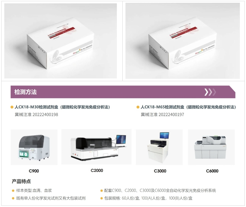 血清中存在兩種形式的CK18,即總CK18蛋白(CK18-M65)和半胱氨酸裂解的CK18片段(CK18-M30)。CK18-M65被用來評估總肝細胞死亡,而CK18-M30用于特異性評估肝細胞凋亡。