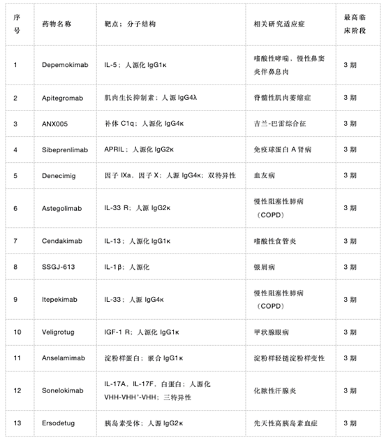 本篇我們將介紹18款有望在2025年提交上市申請(qǐng)的單抗藥物,其種5款則專(zhuān)門(mén)針對(duì)癌癥適應(yīng)癥,13款針對(duì)非癌癥適應(yīng)癥。