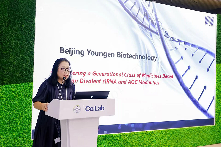 2025年9月8日,北京堯景基因生物技術有限公司(下稱“堯景基因”)應邀參加拜耳Co.Lab全球生命科學共創(chuàng)平臺在華開幕一周年“1起·為創(chuàng)想喝彩”主題活動,共同探討中國創(chuàng)新藥的未來發(fā)展?jié)摿Γ苿痈嗤黄菩詣?chuàng)新成為應對全球健康挑戰(zhàn)的中國解決方案。堯景基因首席科學顧問鐘輝教授分享全球小核酸行業(yè)的發(fā)展與競爭格局,展示了公司自主研發(fā)的心臟靶向遞送技術平臺及管線研發(fā)成果。