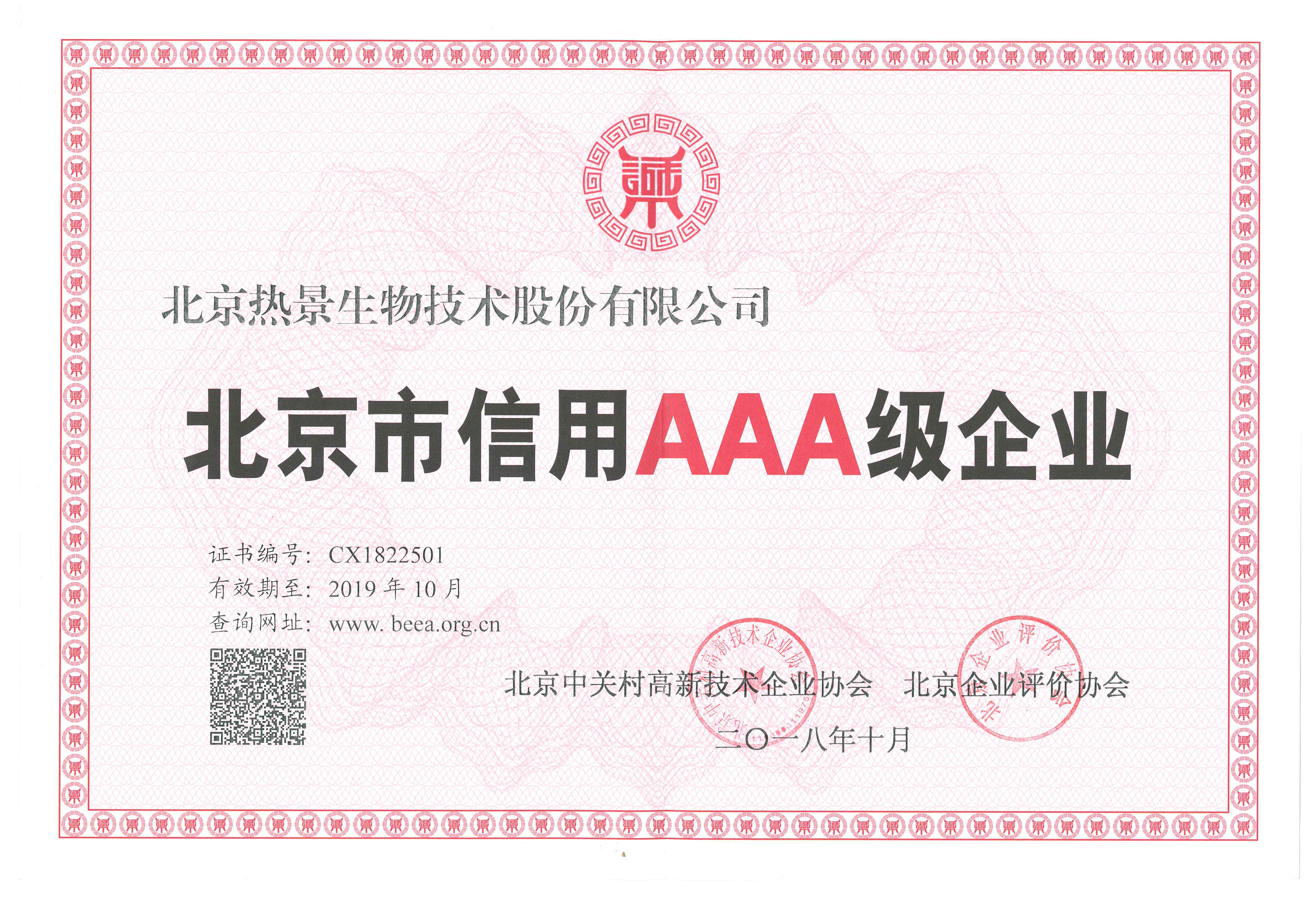 北京市信用AAA級企業(yè)